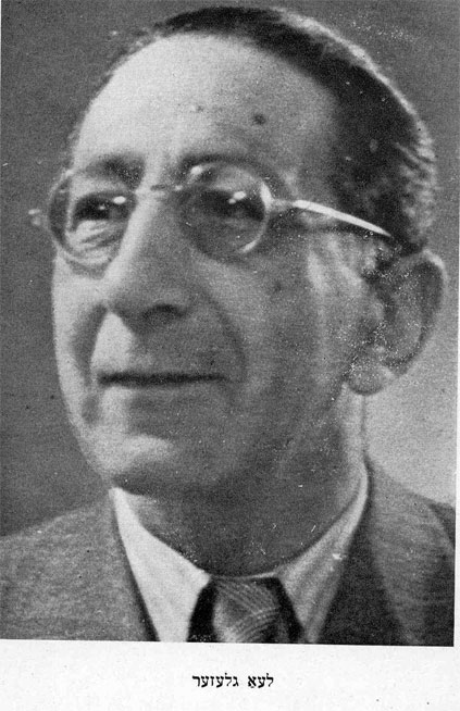 Léo GLAESER est né à Riga en 1877. Militant au sein du parti sioniste socialiste, il est arrêté en 1906 et contraint à l’exil. Arrivé en France en 1908, il entreprend des études de droit et devient avocat. Il devient Président de la Ligue pour les Juifs opprimés et fonde la Kultur Ligue à Paris en 1920. Membre du Comité de la rue Amelot, il sera arrêté par la Milice en juin 1944 alors qu’il se trouvait dans la région de Lyon et sera fusillé le 29 juin à Rillieux-le-Pape.