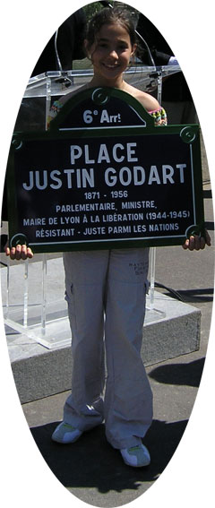 Monsieur le Maire de Paris, Madame Odette Christienne, adjointe au Maire de Paris, Madame Evelyne Haguenauer, adjointe au Maire de Lyon, Monsieur J.P. Lecoq Maire du 6e arrondissement, Monsieur J. Charles Bossard, 1er adjoint au Maire du 6e arrondissement, Mesdames et Messieurs du Conseil de la Ville de Paris qui avez voté à l’unanimité pour la "Place Justin Godart", Monsieur Philippe Lamy, Madame Melissa Keilany, Madame Léger et sa patience infinie, je vous remercie du fond du cœur pour votre action si positive qui a permis cette belle cérémonie en l’honneur de Justin Godart.