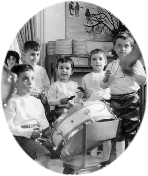 Un élément de réponse : le costume était celui utilisé pour l'orchestre des petits - Nous avons retrouvé d'autres photos, en noir et blanc :